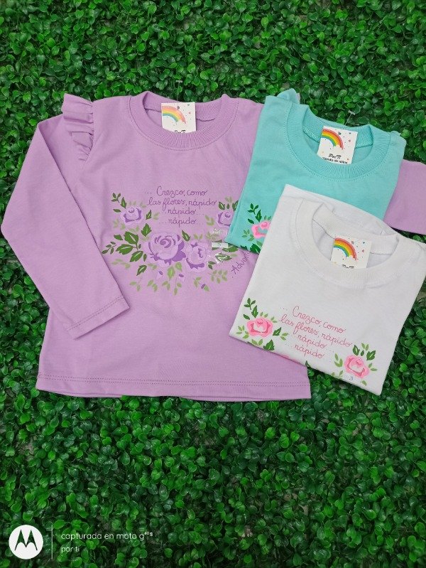 Remera beba manga larga con volados. Talles reales del 3 al 5