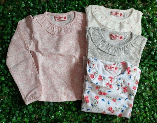Remera beba manga larga con glitter. Talles chicos 2 y 3 (hasta 6 meses)