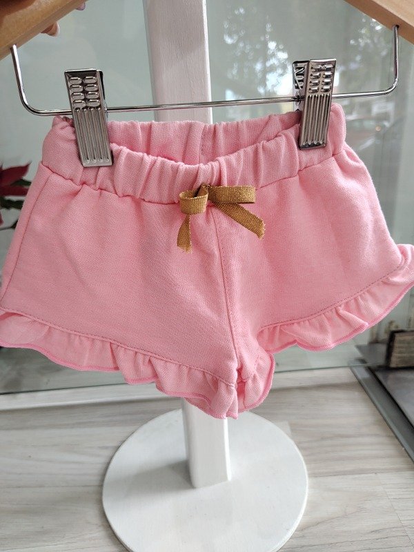 Short beba algodón con volados y moño. Talles del 1 al 5