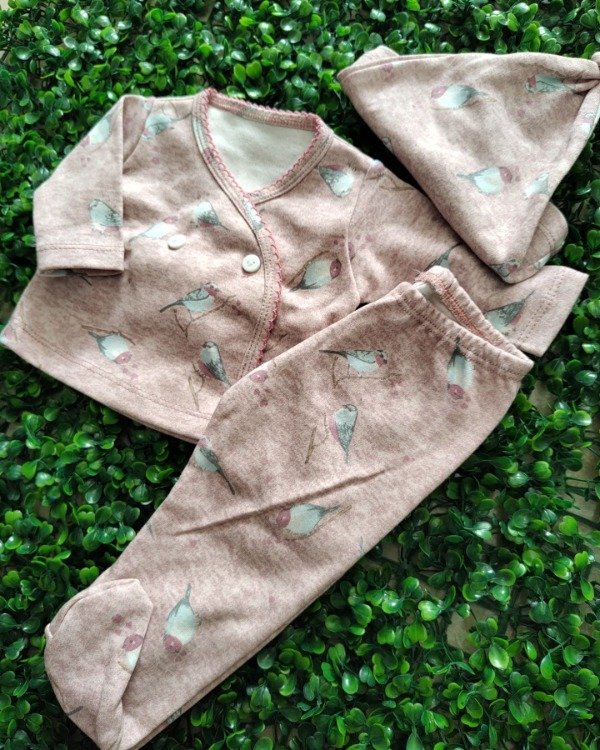 Ajuar algodón: batita, gorro y ranita. Talle único