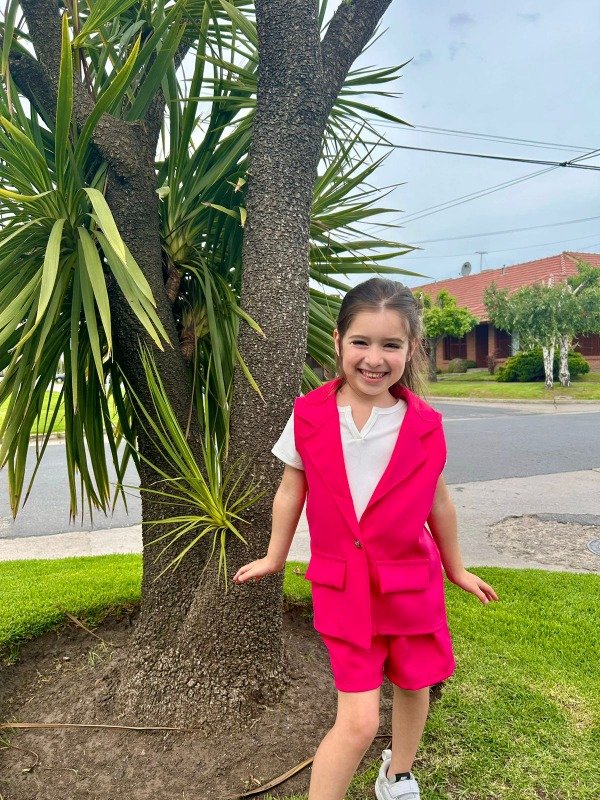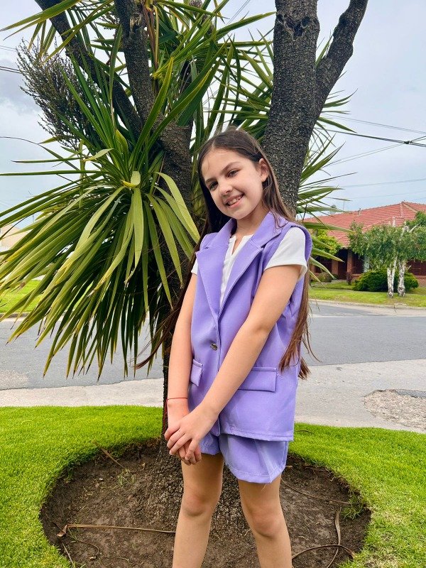 Conjunto sastrero nena, en fucsia y lila.Talles reales del 4 al 14