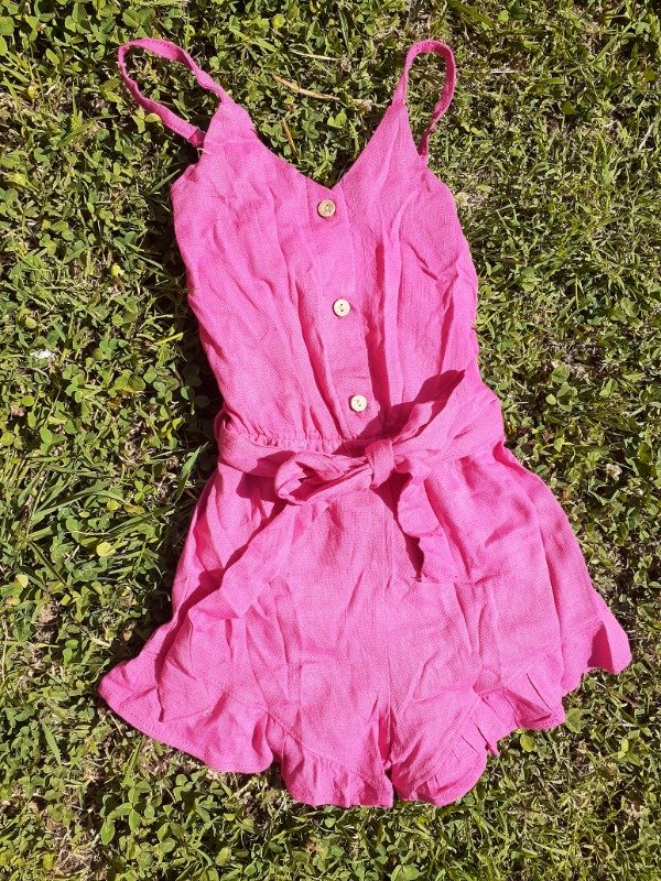 Mono nena corto con volados de lino. Talles del 2 al 12