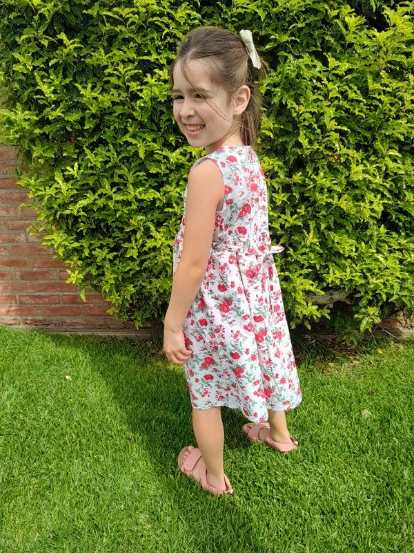 Vestido de nena poplín, con lazo. Talles del 0 al 12